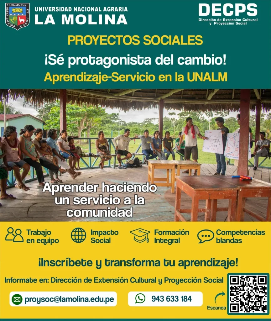 La Dirección de Extensión Cultural y Proyección Social de la UNALM promueve actividades que vinculan a docentes, estudiantes y comunidad. Integra la extensión con la formación profesional, fomentando la participación estudiantil en proyectos sociales. Además, impulsa la investigación participativa, generando conocimiento relevante y fortaleciendo el compromiso social de la universidad con el desarrollo de la sociedad.